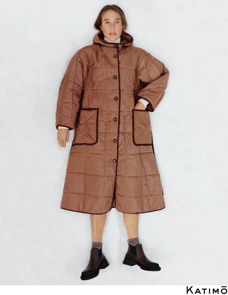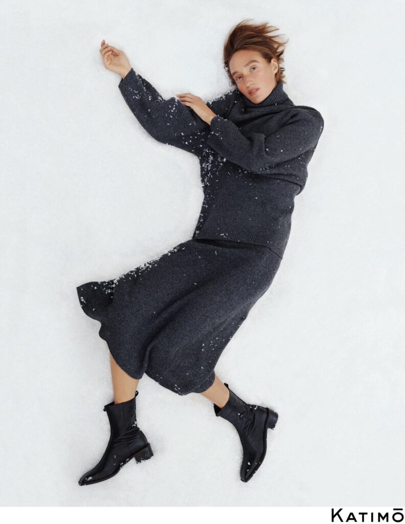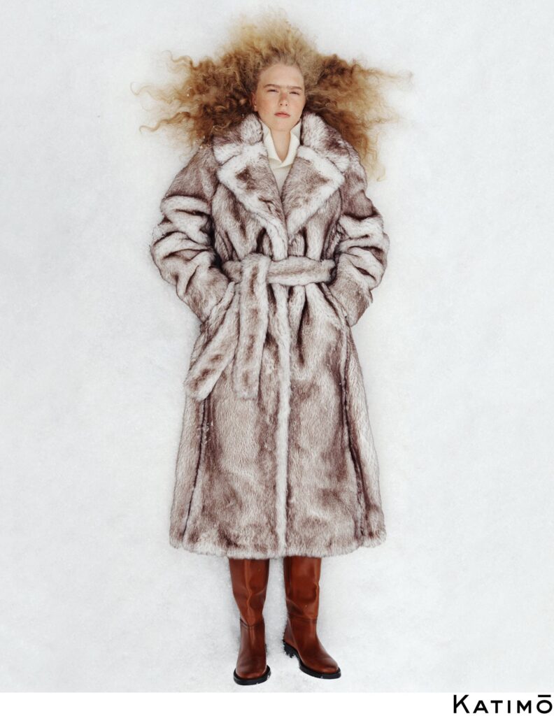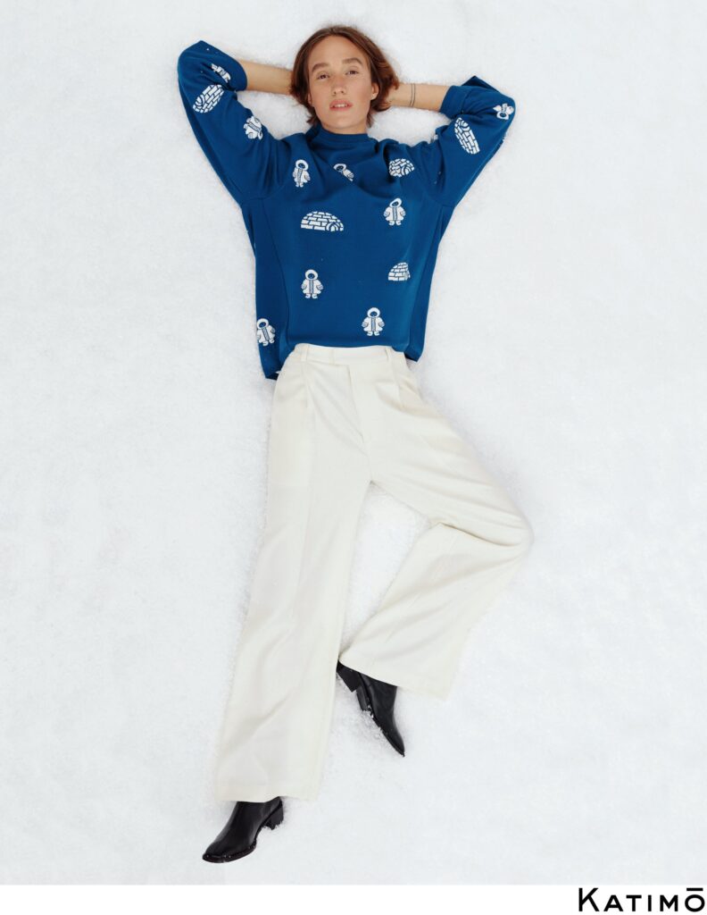 Украинский бренд Katimo представил зимнюю капсульную коллекцию, вдохновленную Арктикой. В нее вошли объемные свитеры (в том числе со стилизованными изображениями эскимосов и иглу), водолазки в рубчик, платья из овечьей шерсти, брюки свободного кроя, утепленные стеганые пальто с капюшоном, напоминающие традиционную одежду жителей северных широт, а также шуба из искусственного меха.