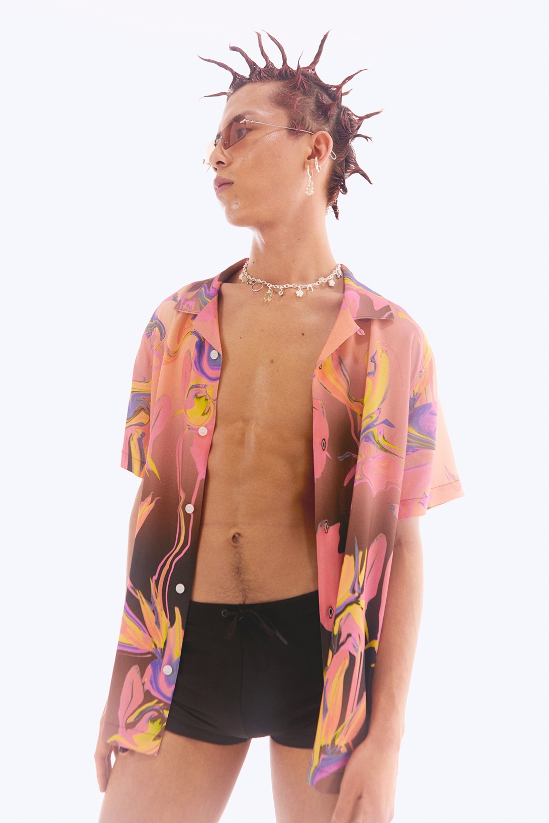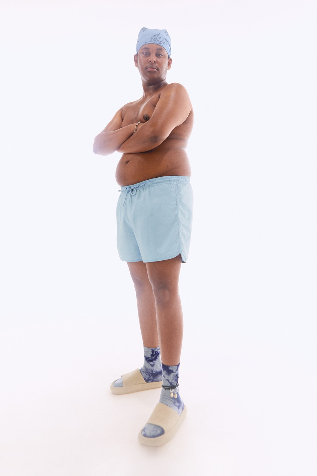 В коллекцию вошли раздельные модели в стиле 1990-х для женщин, плавки и шорты для мужчин, а также большие полотенца и платки-парео.