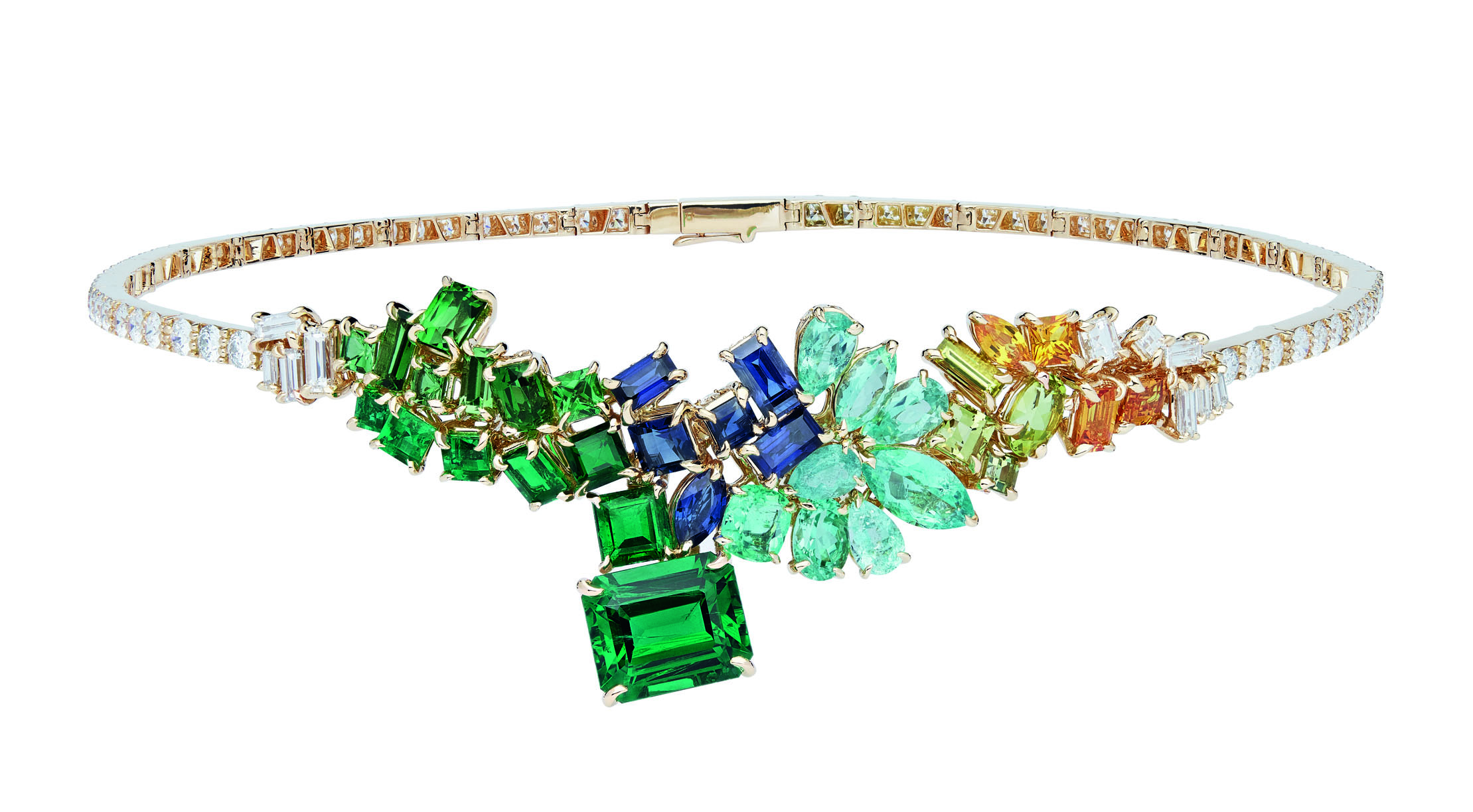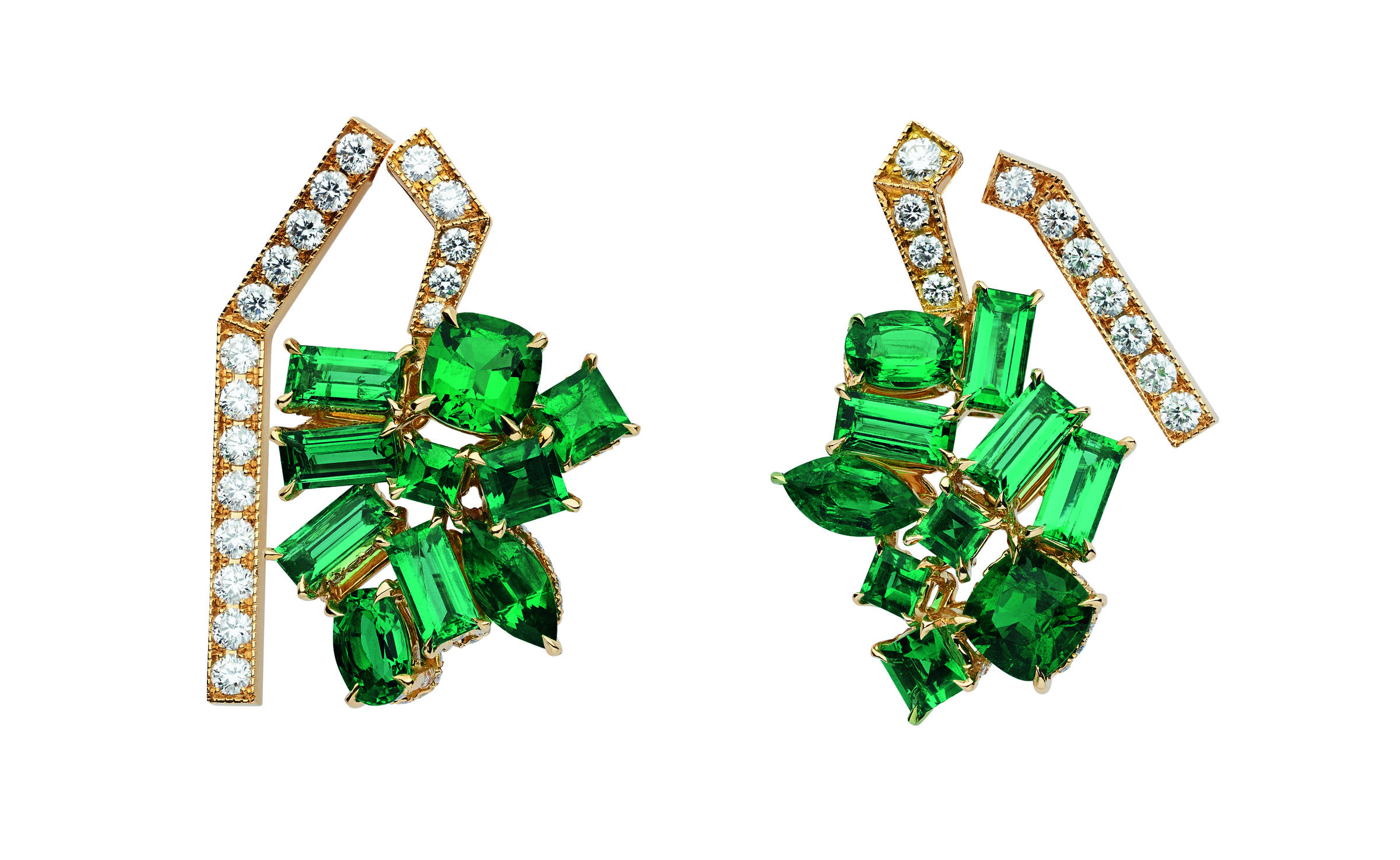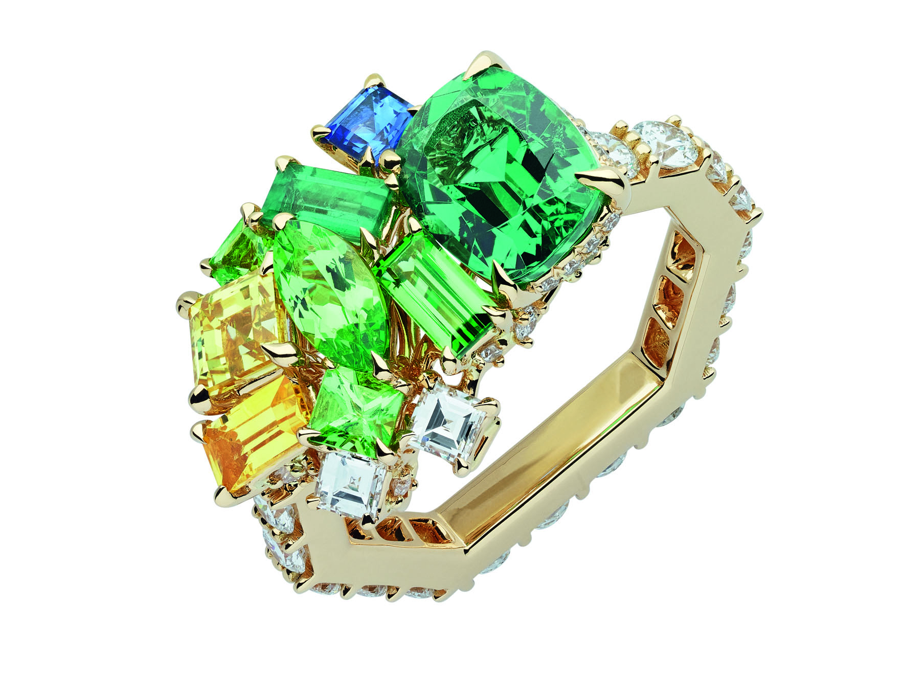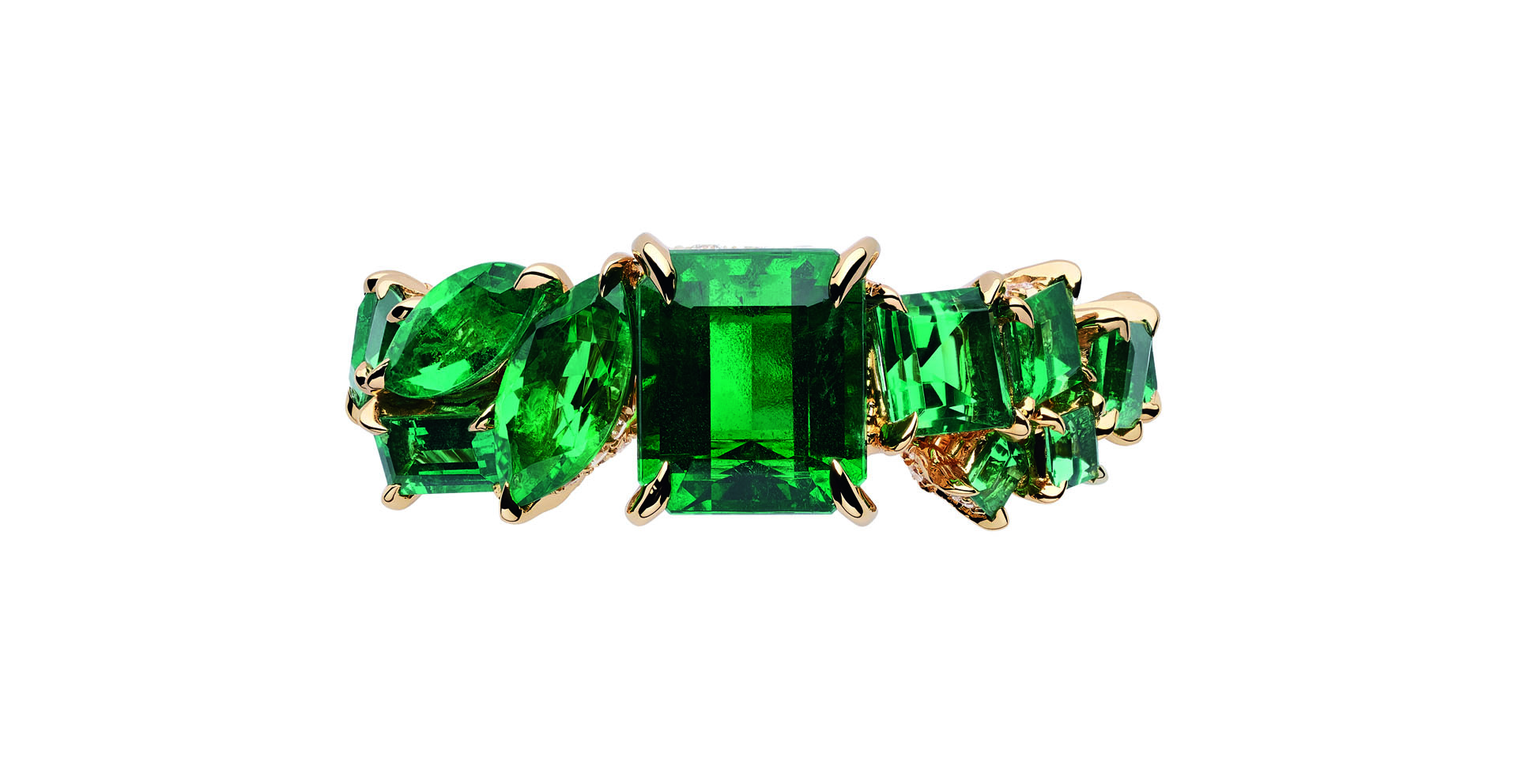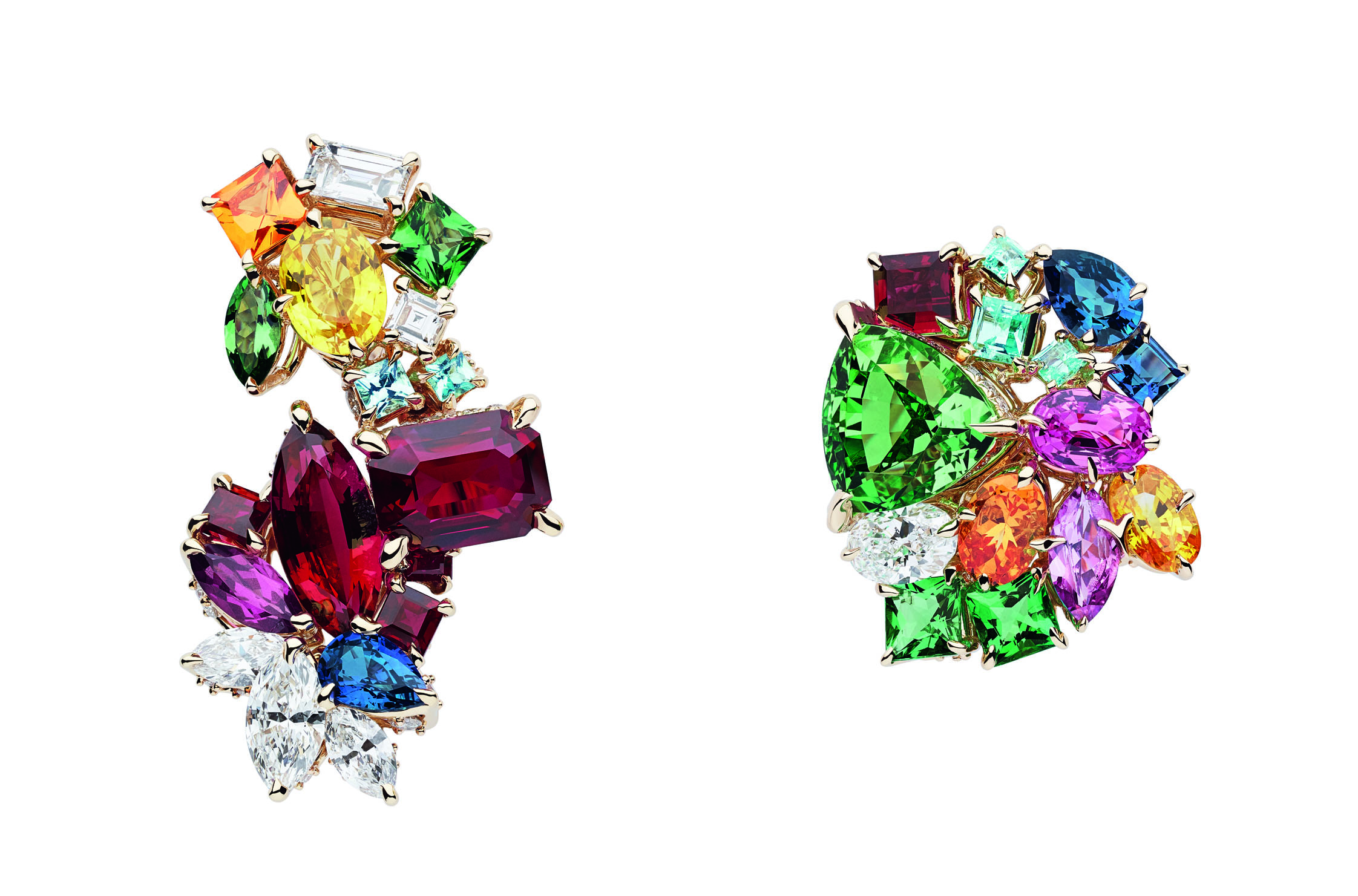 В коллекцию Dior Gem вошли серьги, кольца и колье из желтого, белого и розового золота с бриллиантами, изумрудами, гранатами, цаворитами, розовыми и желтыми сапфирами, танзанитами и шпинелью.