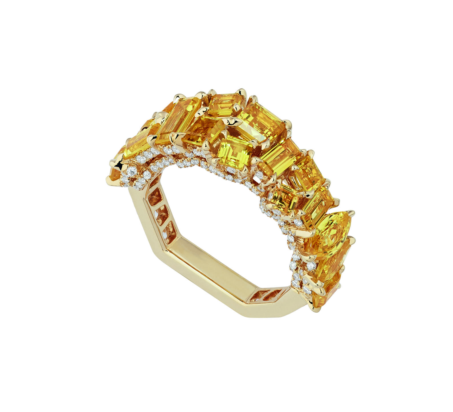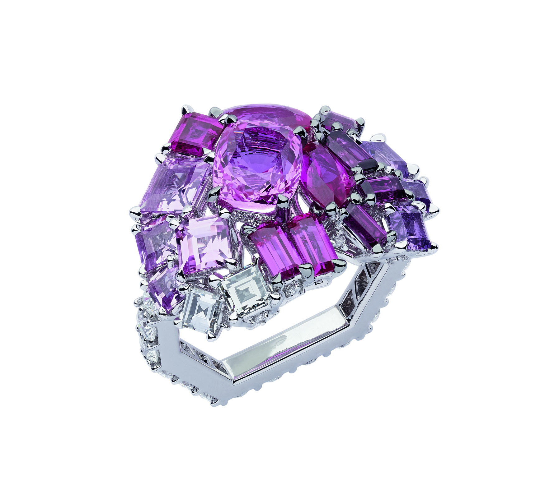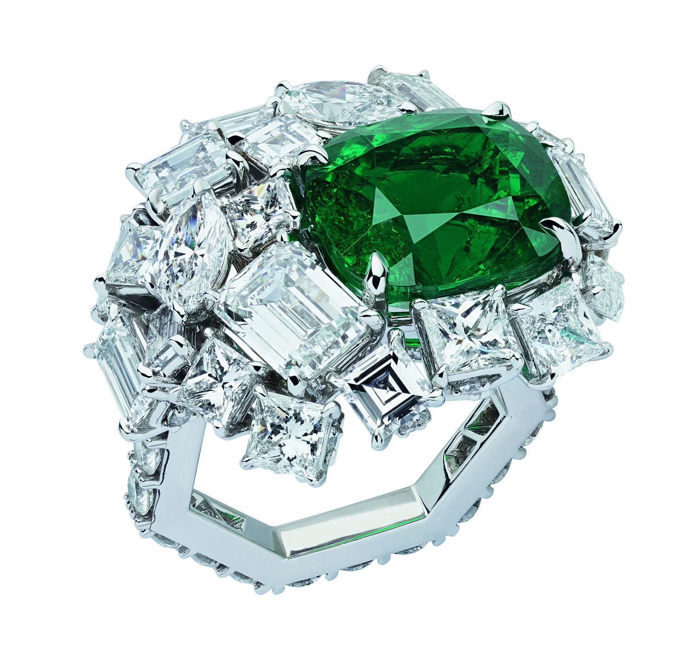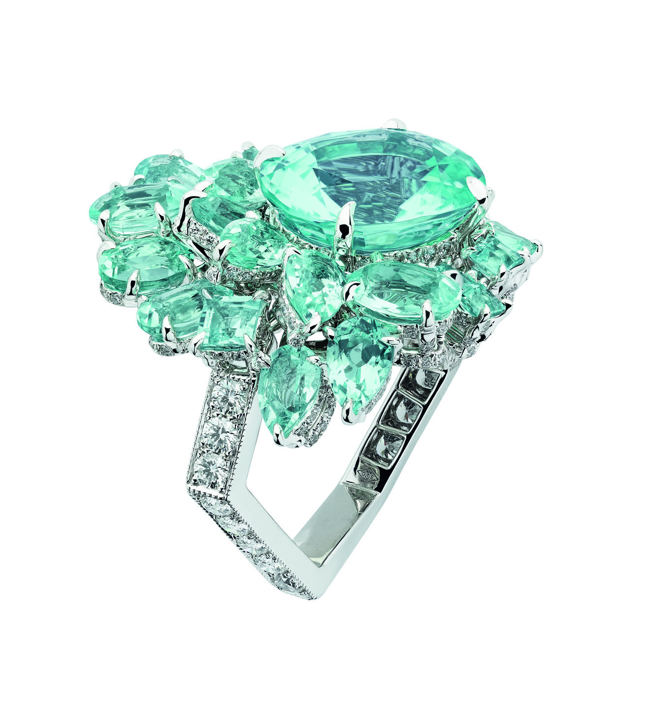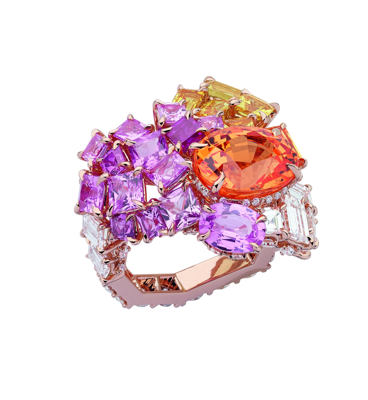 В коллекцию Dior Gem вошли серьги, кольца и колье из желтого, белого и розового золота с бриллиантами, изумрудами, гранатами, цаворитами, розовыми и желтыми сапфирами, танзанитами и шпинелью.