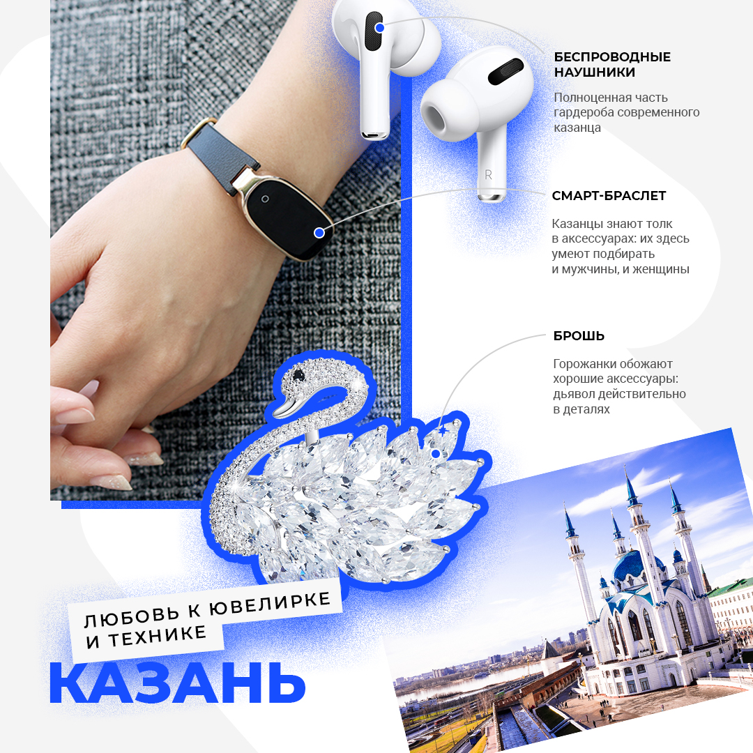 Жители Санкт-Петербурга предпочитают спортивные образы с худи и массивными кроссовками или же, наоборот, откровенно-сексуальные — с чулками, корсетами и кружевом. Жители Краснодара выбирают технологичные аксессуары — планшеты и беспроводные наушники, а екатеринбуржцы следят за собой с помощью патчей для глаз и умных бьюти-гаджетов. Не отстают в увлечении техникой и пользователи AliExpress из Казани.