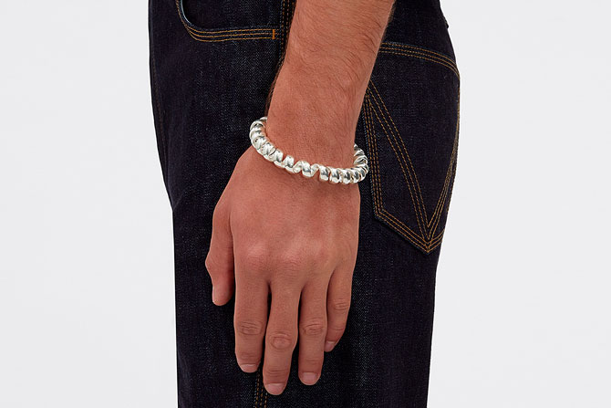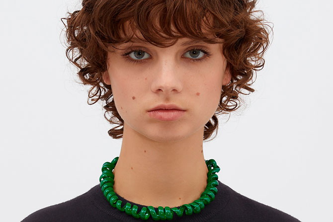 Модный дом Bottega Veneta выпустил спиральные аксессуары, напоминающие телефонный провод. В коллекции — ожерелье, серьги и браслет.