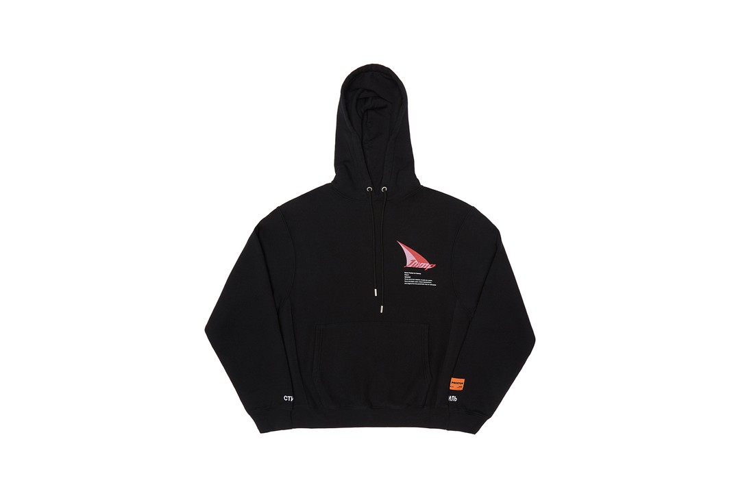 В капсулу вошли ветровки, спортивные брюки и шорты, вместительные рюкзаки и сумки, а также футболка и худи с принтами. В честь запуска коллекции в пространстве Ssense в Монреале появилась инсталляция, увидеть которую можно до 26 августа.