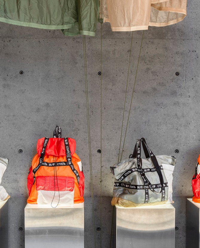 Херон Престон выпустил для канадского ритейлера Ssense капсульную коллекцию одежды и аксессуаров, созданных из использованных парашютов. Вдохновением для их дизайна стали внешний вид и особенности выбранного материала.