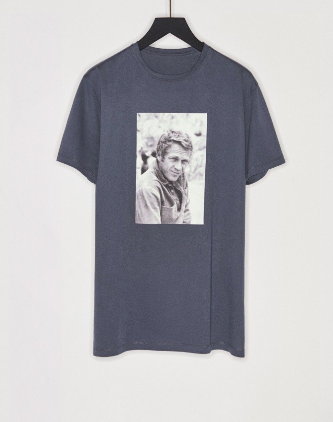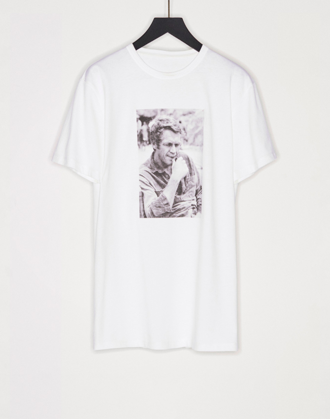 Massimo Dutti представил лимитированную коллекцию из трех мужских футболок с черно-белыми портретами известного американского актера и мотогонщика Стива Маккуина. Они изготовлены в Португалии из 100% органического хлопка.