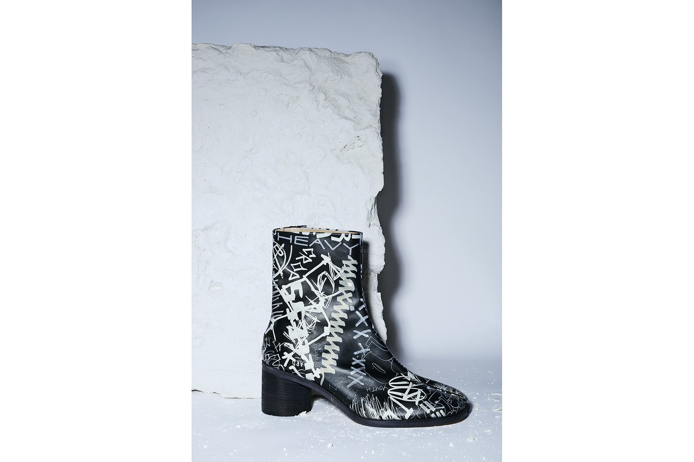 Maison Margiela представил капсульную коллекцию, в которую вошли две пары ботинок-таби (одна для женщин и одна для мужчин) и две сумки, покрытые рисунками в стиле граффити. Источником вдохновения для капсулы стала коллекция бренда весна-лето 1990.