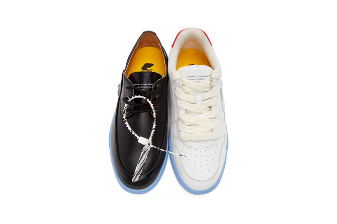 Off-White выпустил «перепутанную» пару обуви, состоящую из кроссовки и дерби