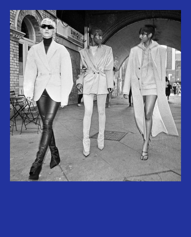 В Сети появилась рекламная кампания новой коллекции бренда Рианны Fenty «Release 8-19». На черно-белых снимках авторства британского фотографа Лиз Джонсон Артур модели гуляют по улицам лондонского района Пекхам в объемных пальто, пиджаках сложного кроя, мини-юбках и облегающих брюках.