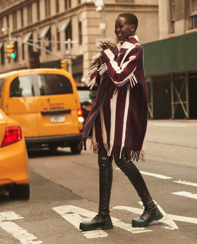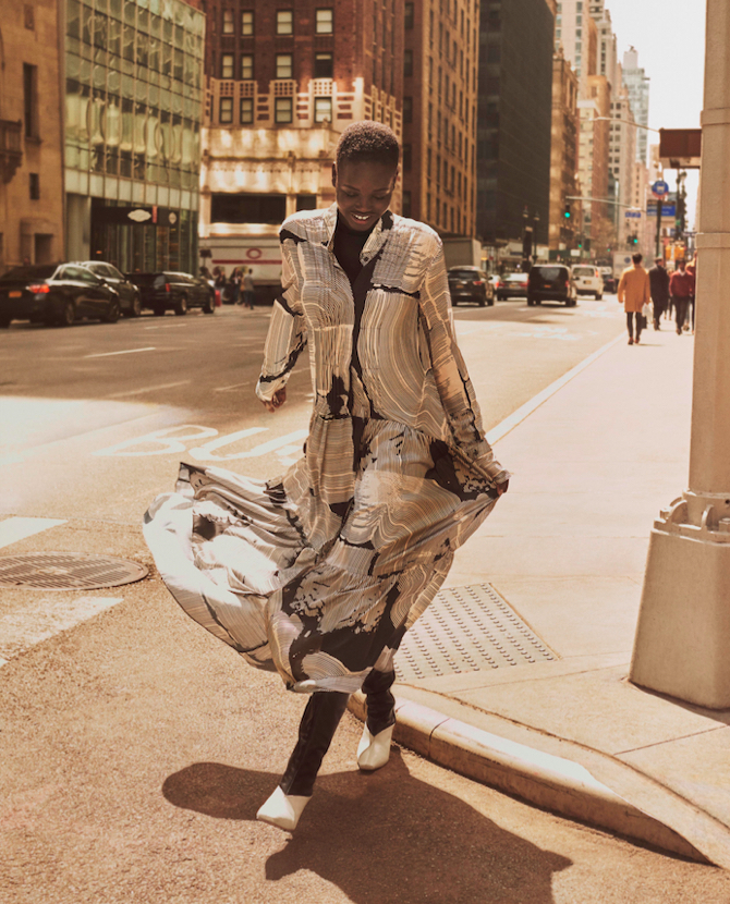 H&M выпустил кампанию новой осенне-зимней коллекции Studio, озаглавленной Magical Realism. На опубликованных снимках модель Адут Акеш позирует на улицах Нью-Йорка в длинных рубашках с принтами, свитерах с высоким горлом, платьях со сборками, костюмных брюках, блестящих юбках, пальто с бахромой и кожаных куртках.