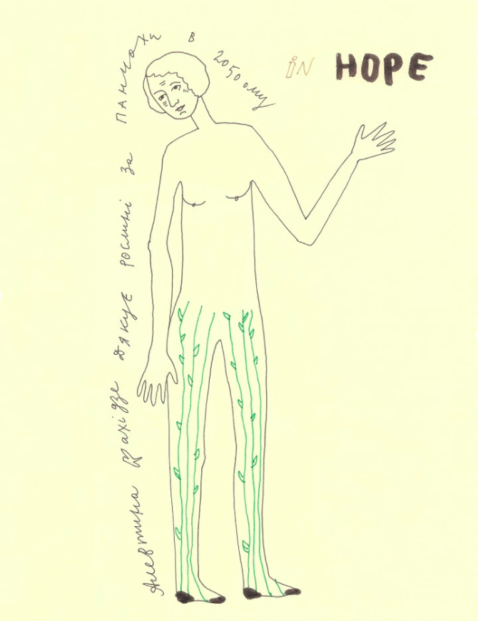 «Автором русской "Надежды" стал Эрик Булатов — классик соц-арта и художник уровня и масштаба Дэвида Хокни и Джона Балдессари. Еще в 1970-х годах, на закате Советского Союза, он прославился картинами, в которых сочеталась риторика советского плаката и пейзажной живописи. Даже живя в Париже, он остается одним из самых известных и дорогих русских художников. Последнее шоу Гоши Рубчинского прошло на фоне работы Эрика под названием "Свобода". Надежда, витающая в облаках, стала для нас универсальным символом, в который каждый человек на Земле может вложить свой собственный смысл. Наша команда верит в силу слов, искусства и визуализации так же, как мы верим в стиль и чувство вкуса», — рассказала главный редактор Vogue Russia Маша Федорова.