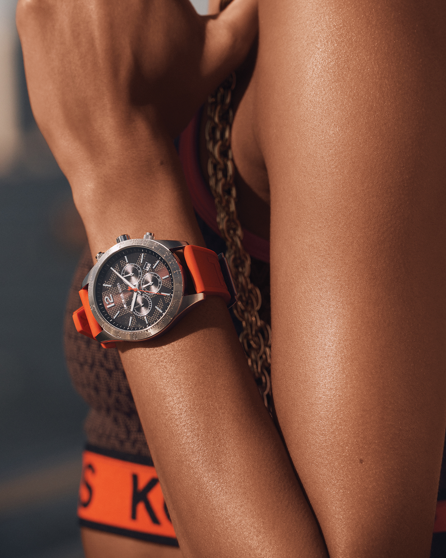 Michael Kors представил осеннюю капсульную коллекцию #MKGO, вдохновленную активным времяпрепровождением в городе. В нее вошли одежда, обувь и аксессуары в стиле спорт-шик — футболки, кроп-топы, трикотажные платья, худи, олимпийки, легинсы, пуховики, кроссовки с амортизирующей подошвой, ботильоны на высоком каблуке, поясные сумки, рюкзаки, солнцезащитные очки и часы.