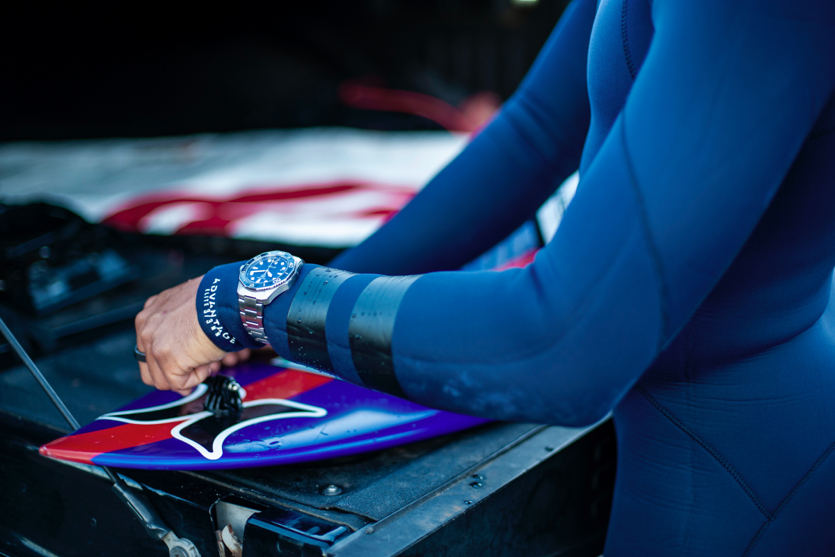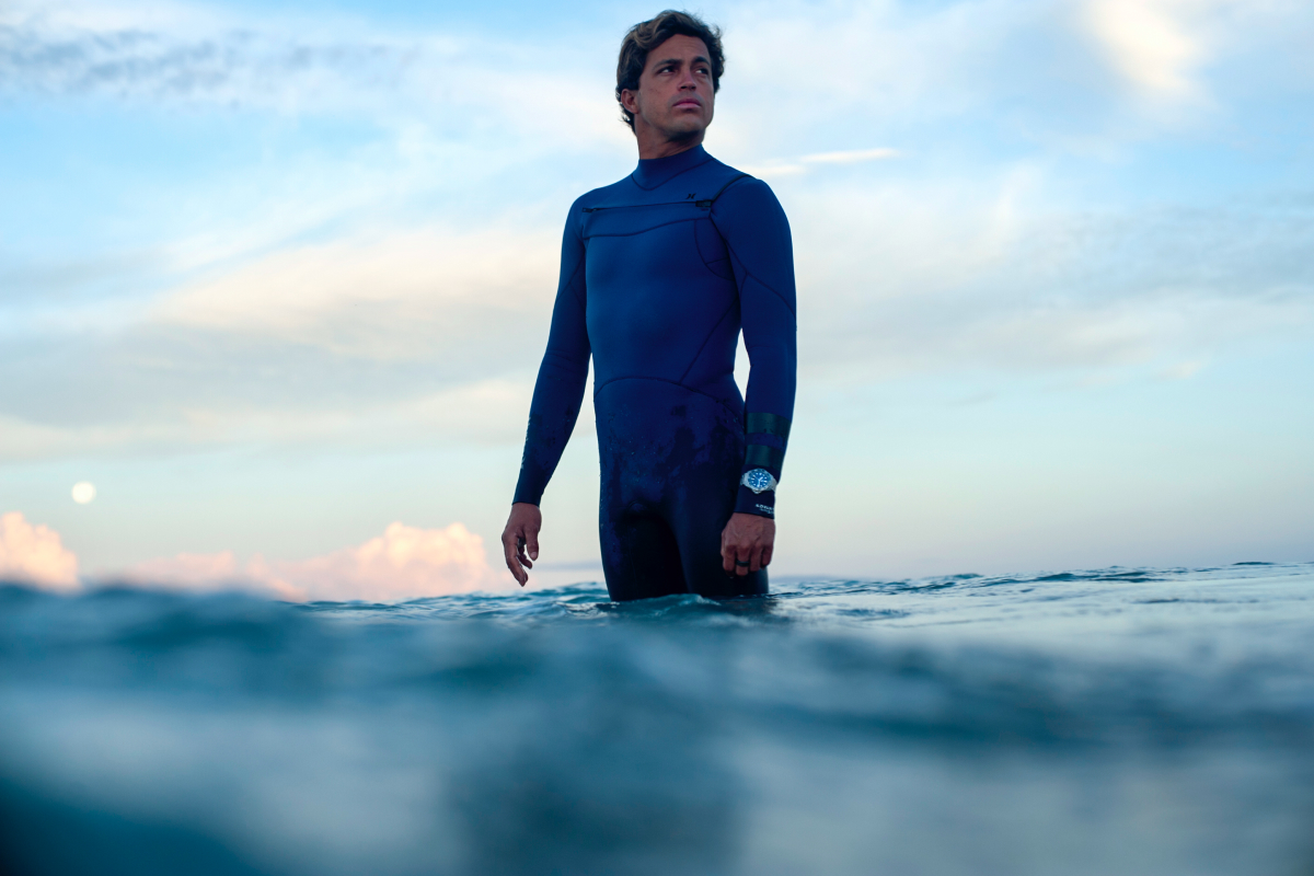 Швейцарский бренд TAG Heuer представил кампанию новой коллекции часов Aquaracer Professional 300. Ее героями стали серфер Кай Ленни, чемпионка Франции по фридайвингу Жюли Готье и клифф-дайвер Робин Джордж. Съемки прошли в Назарете, Португалии и на Гавайях. Документальные фотографии подготовки спортсменов дополняет видео молодого режиссера Йонаса Эги, в котором океан окрашивается в невероятные фантастические цвета.