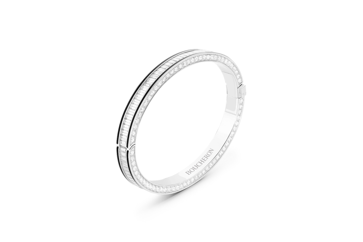 «Я люблю это кольцо. Оно — прекрасный проводник в мир дома Boucheron, хотя бы из-за синего кабошона, который, на мой взгляд, — очень узнаваемый мотив дома. Невозможно отвести взгляд от потрясающего созвездия алмазов, украшающих кольцо. При взгляде сбоку кабошон кажется парящим, а если смотреть сверху, его огранка без резких граней смягчает преломление света, раскрывая рассеянный блеск бриллиантов, который идет как будто изнутри. Настоящая магия», — рассказала креативный директор Boucheron Клэр Шуан.