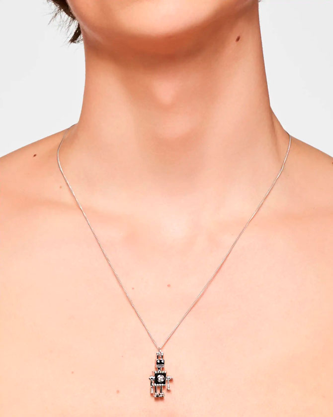 Дизайнеры обыгрывают символы Prada – логотип, розы, роботов, электрогитары. Также можно увидеть украшения в виде бананов, ключиков и кроликов. В коллекцию вошли серьги, браслеты, кулоны и ожерелья.