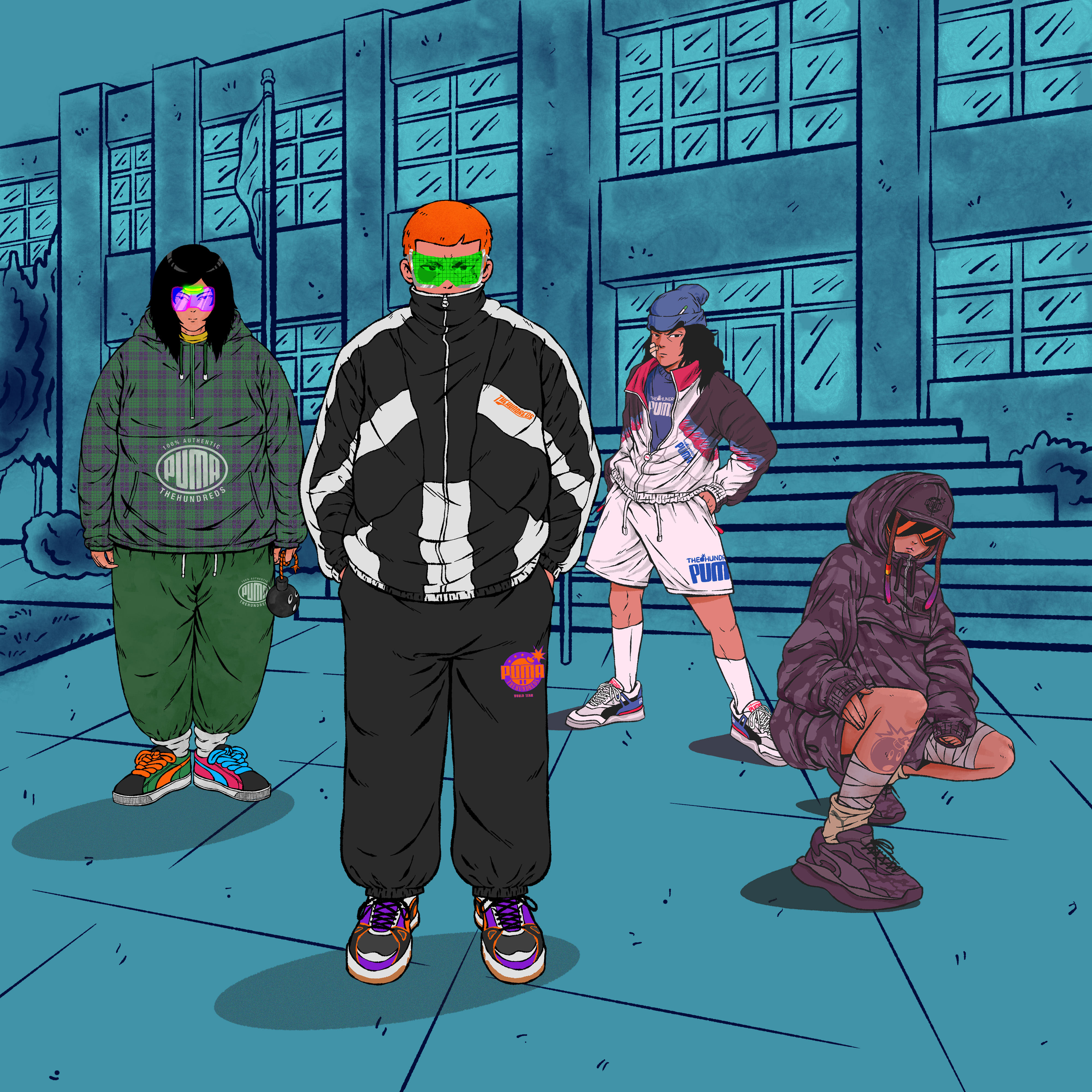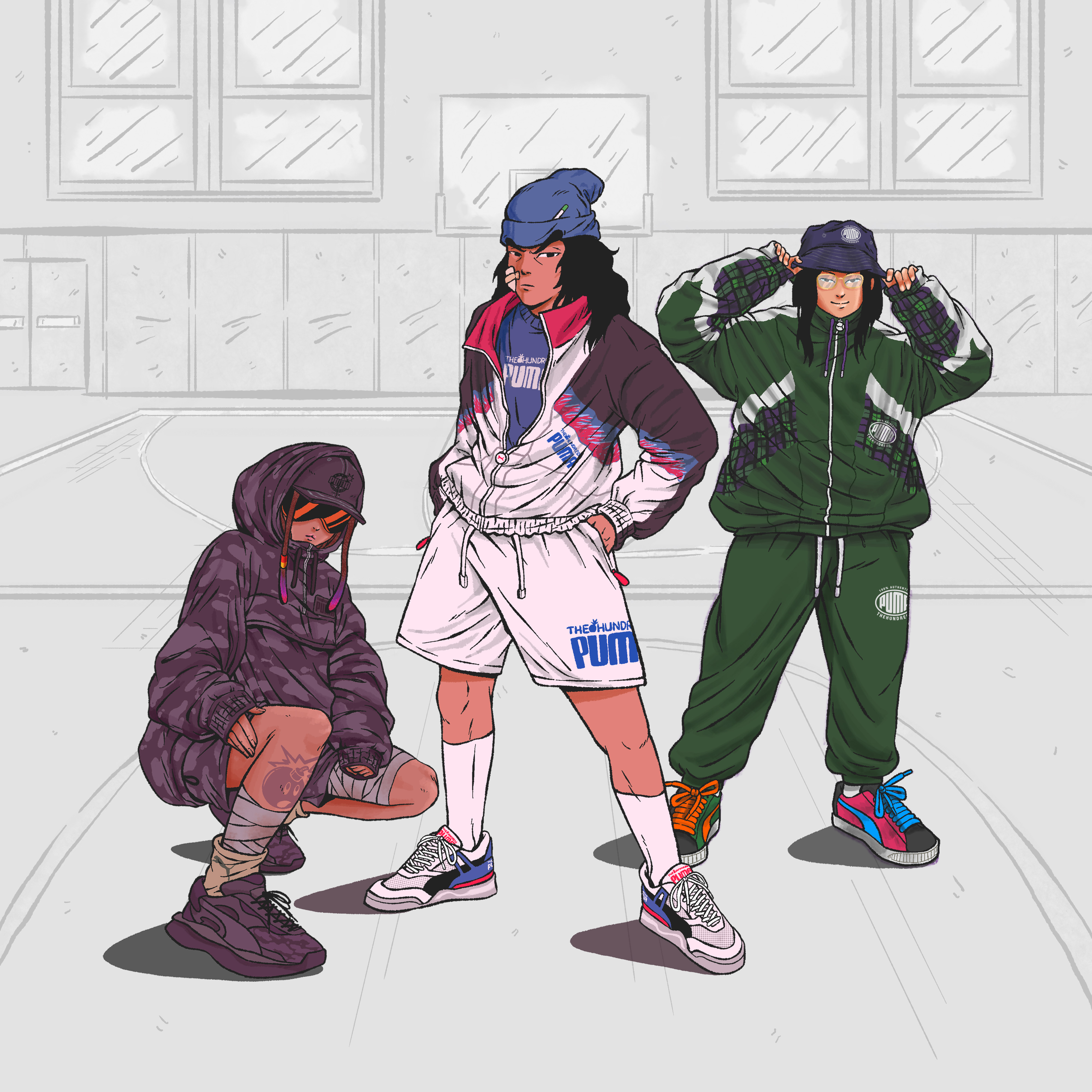 Puma представил коллекцию одежды, обуви и аксессуаров, созданную совместно с калифорнийским брендом The Hundreds. Она получила название «The 90s Cliques» и демонстрирует различные стили учеников средней школы 1990-х годов. Иллюстрированный лукбук коллаборации был создан художником Goathe, для работ которого характерно сочетание эстетики streetwear, аниме и хип-хопа.