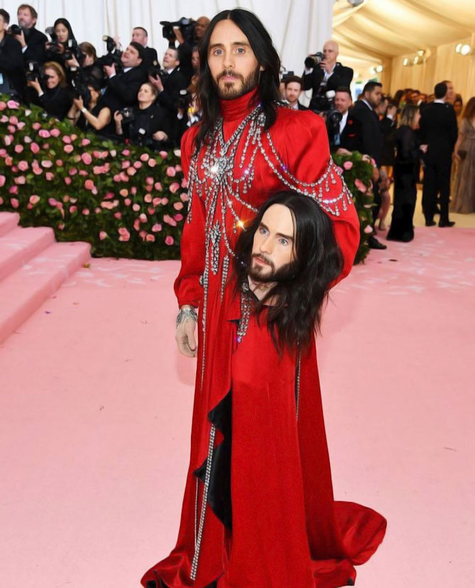 В мае Джаред Лето пришел с копией собственной головы на ужин Met Gala. За образ музыканта отвечал модный дом Gucci, который использовал головы в качестве аксессуаров на одном из своих показов.
