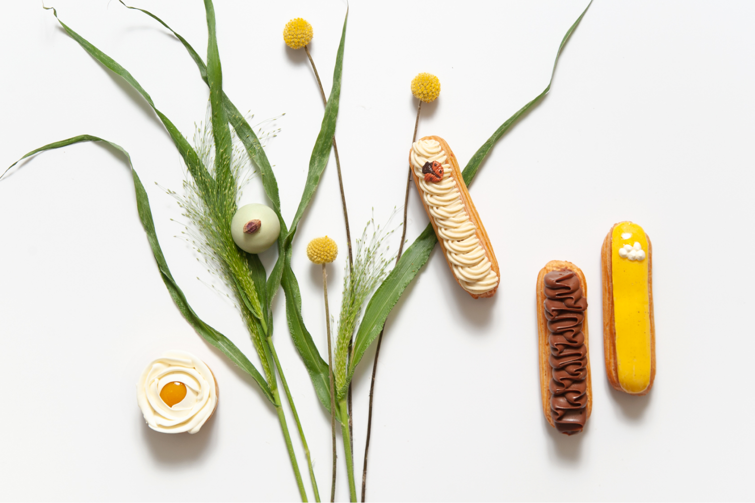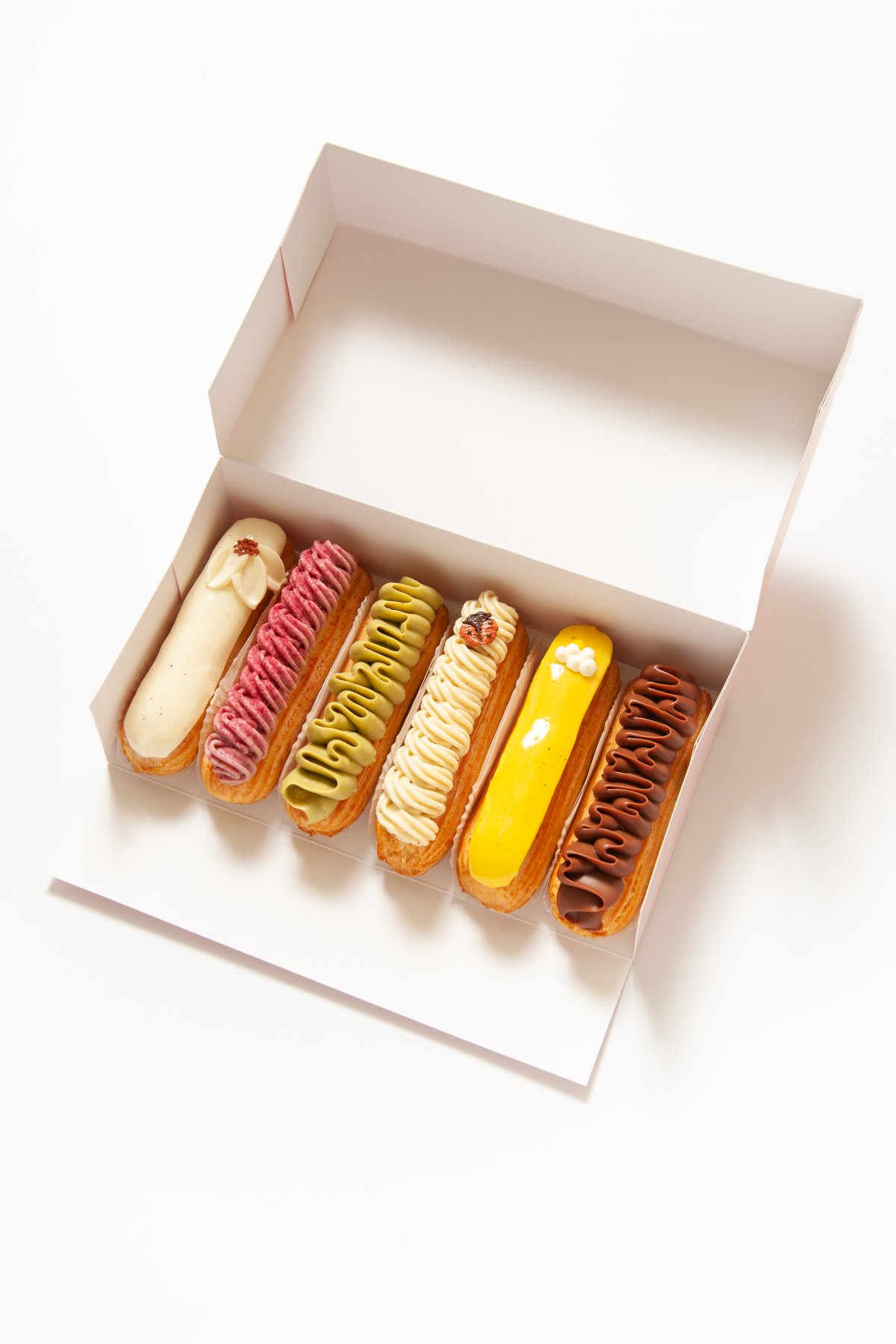 Всего в коллекцию вошли шесть новых вкусов эклеров: топленое молоко с тянучкой, фисташковый с заварным кремом и ганашем на основе белого шоколада, ванильный с шоколадной помадкой, маракуйя-шоколад, абрикосовый с конфи из абрикосов с розмарином и малиновый.