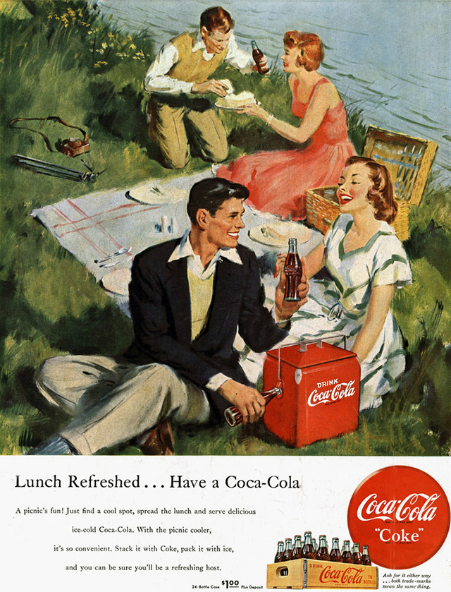 Ровно 130 лет назад американский фармацевт Джон Стит Пембертон придумал рецепт кока-колы. Изначально напиток задумывался как лекарство от расстройств нервной системы и продавался исключительно в аптеках. Лишь когда рецепт кока-колы приобрел бизнесмен Аса Григгс Кендлер (за символическую сумму 2300 долларов), газировка стала самым популярным напитком в США, а потом и во всем мире. Поздравляем именинницу с юбилеем и вспоминаем рекламные кампании шипучего напитка.