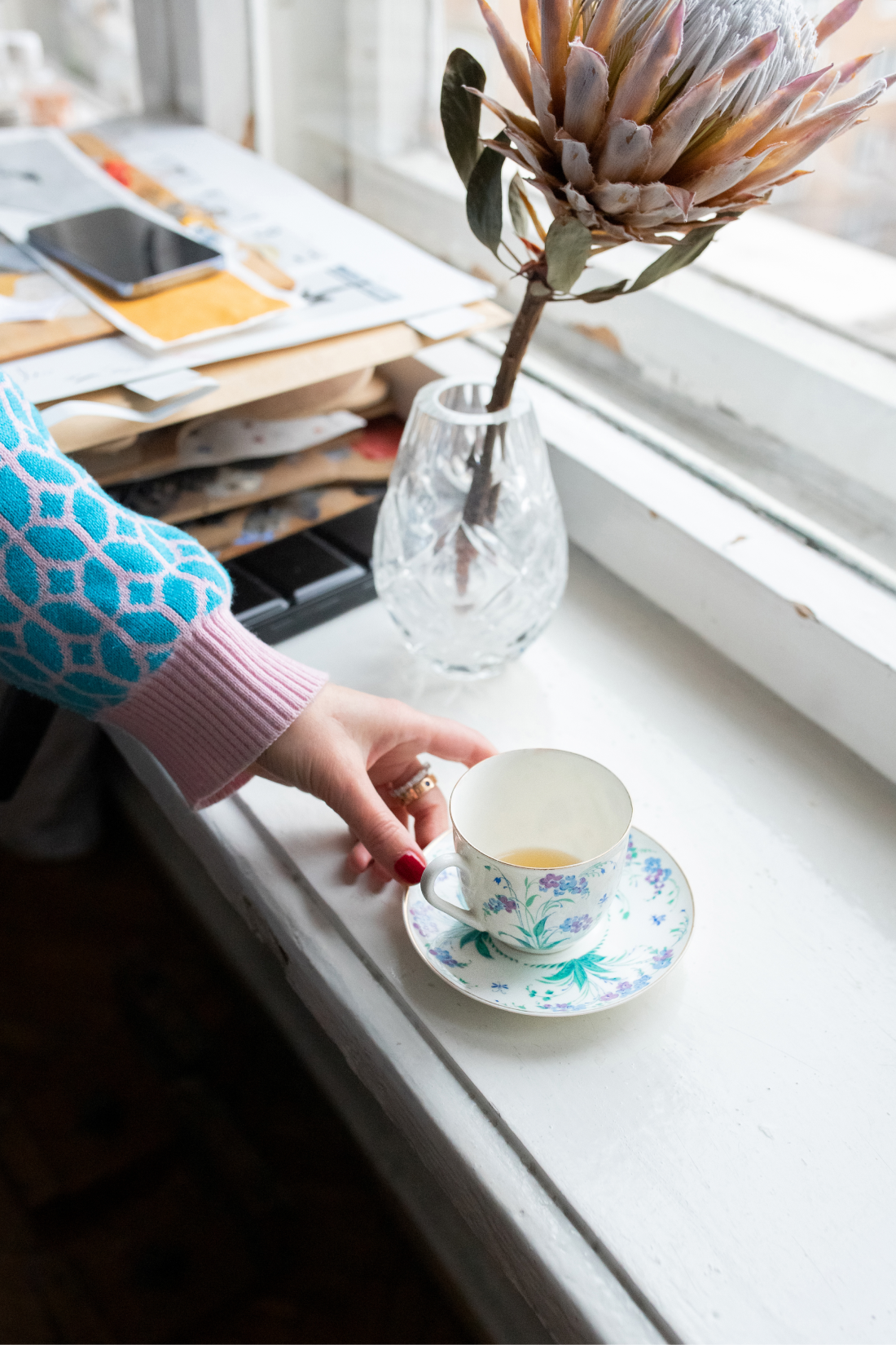 Маша передала Trouvaille винтажную кофейную пару, фужер из желтого кадмиевого стекла, вазу, дизайнерскую вазу в форме граната с ручной росписью, солонку из перегородчатой эмали в стиле клуазоне, десертную тарелку, предметы из хрусталя времен СССР, менажницу с позолотой по краю и многое другое.