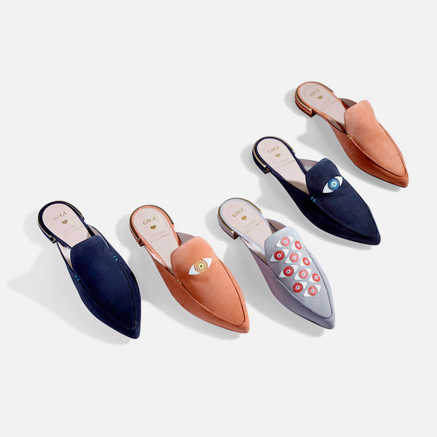 В коллекцию войдут остроносные мюли Eyelove с изображением глаза, символа защиты в мусульманской культуре, и Eyelovemore — сразу с несколькими глазами.