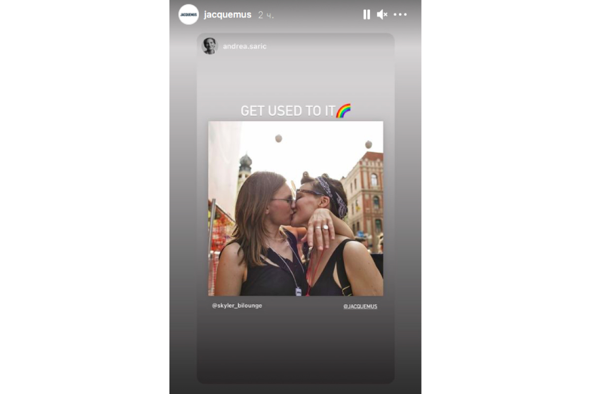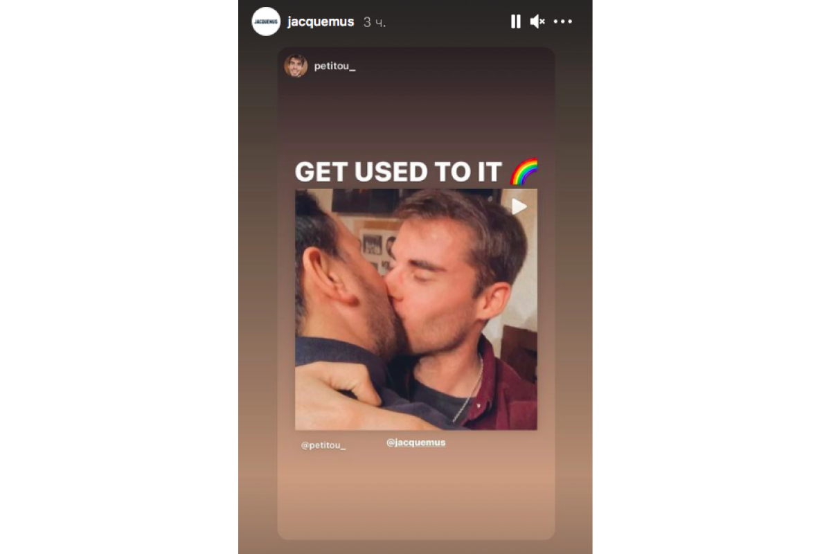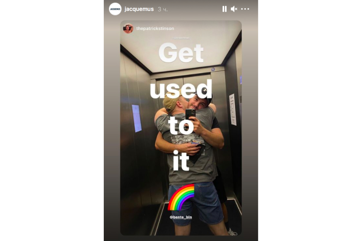 Французский дизайнер Симон Порт Жакмюс запустил инстаграм-флешмоб с лозунгом Get Used To It («Привыкайте к этому»). Он опубликовал в сторис серию совместных снимков со своим женихом Марко Маэстри (пара объявила о помолвке две с половиной недели назад) и мотивировал других пользователей соцсети делиться такими же.