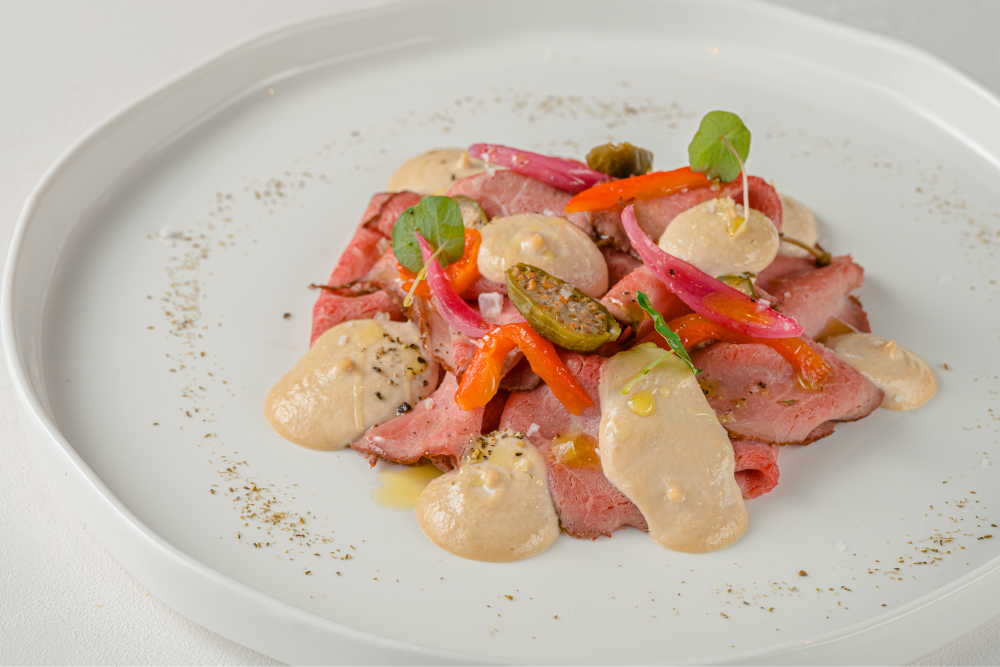 Благодаря шефу ресторан заиграл новыми красками. В меню появились авторский тартар из говядины с картофелем, хумус из брокколи с крабом, суп из бычьих хвостов, ризотто с гребешками, топинамбуром и бергамотом, спагетти со спаржей, вонголе и лаймом, рыба Тюрбо с фенхелем и шафраном, говяжье ребро с капонатой и равиоли пармиджана со страчателлой и сыром каччио рикотта.