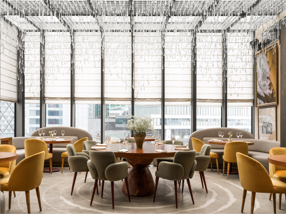 Дизайн интерьера заведения обращается к восточной философии и учению о 5 стихиях, которые привносят в жизнь баланс и гармонию. Все пять элементов — вода, земля, воздух, огонь и эфир — присутствуют в пространстве ресторана.