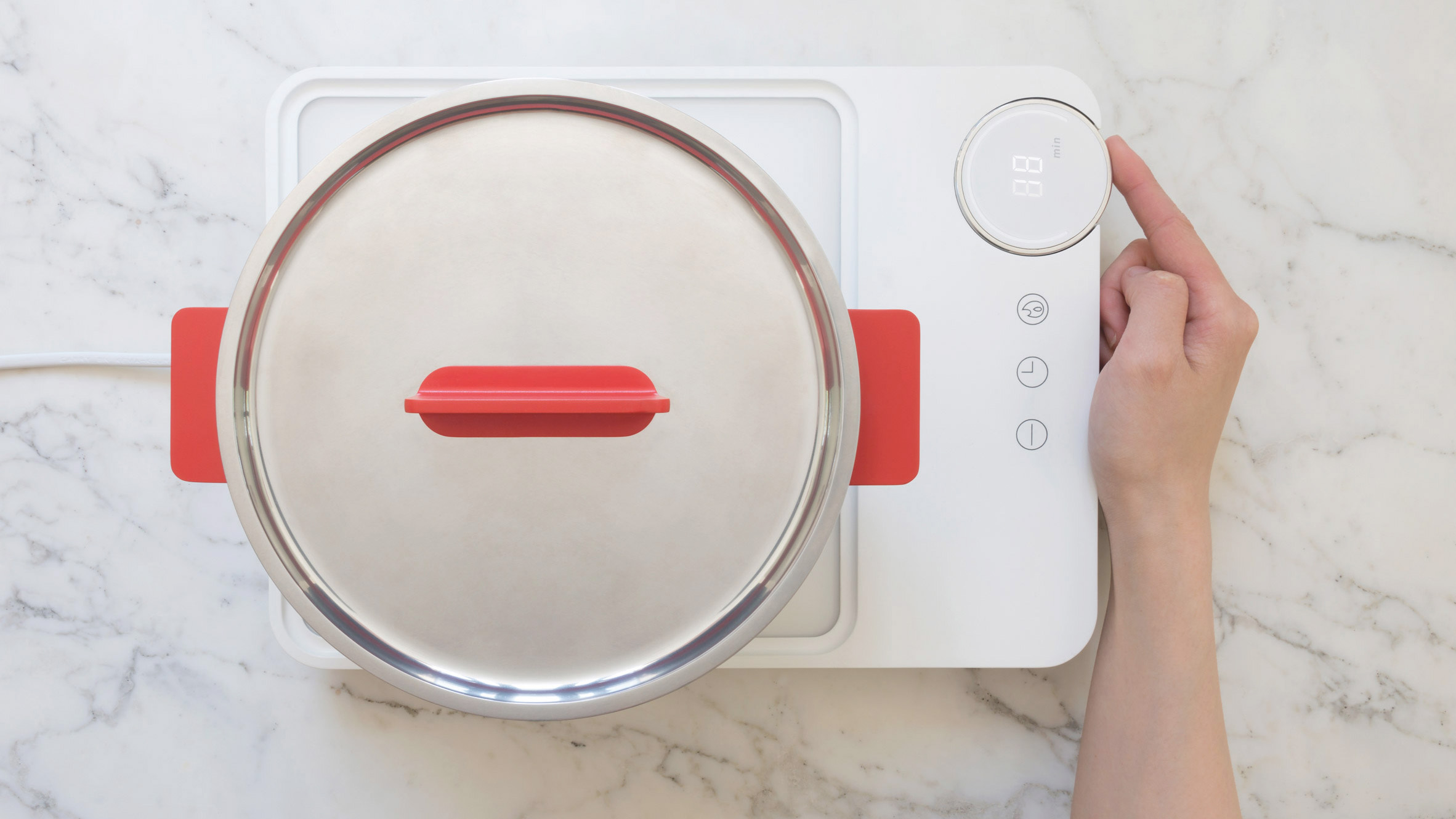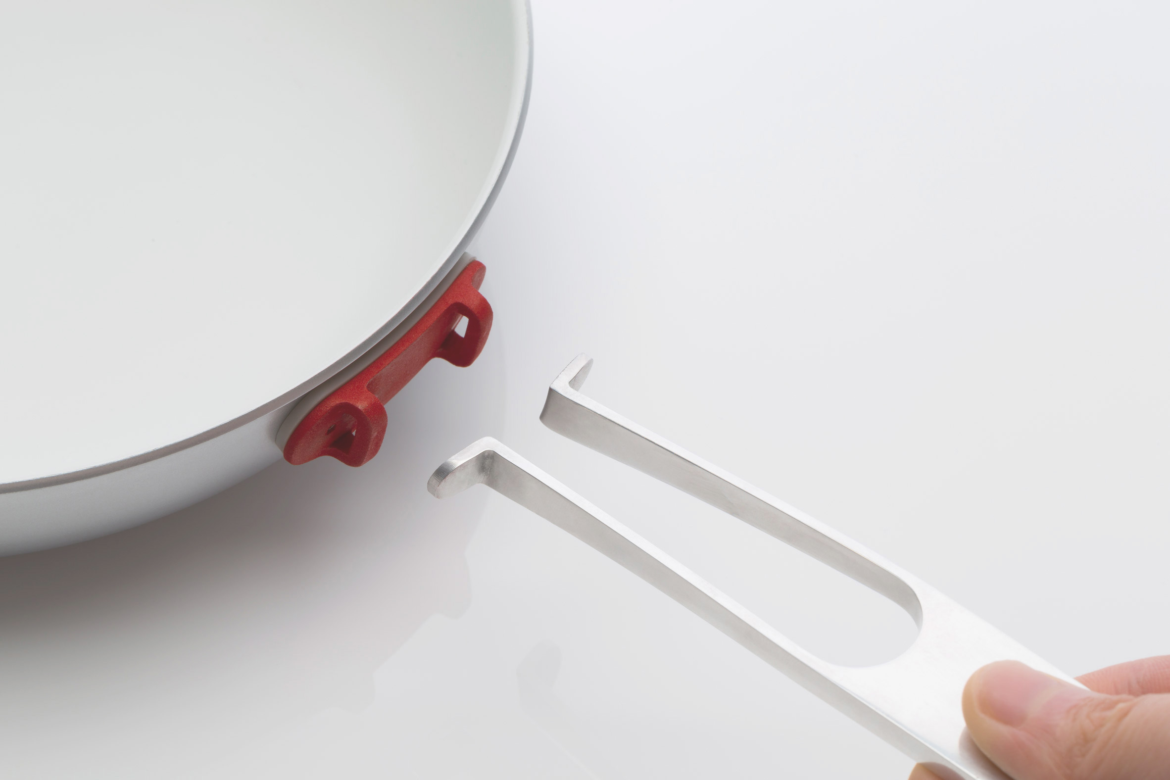 Все предметы коллекции помещаются в кейс, а задняя часть контейнера съемная и может использоваться как поднос или поддон для сушилки. Индукционная плита оснащена таймером и контролем температуры. Основной корпус посуды для готовки выполнен из стали, а ручки сделаны из полимера.