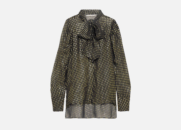 Цены начинаются от 735 долларов за сатиновый топ с открытым плечом. Самая дорогая вещь из коллекции — платье в пол с золотыми нитями за 3 745 долларов.