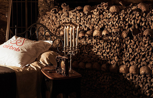 Сотрудники компании Airbnb вновь придумали необычное место проживания для туристов: им стали знаменитые парижские катакомбы, где захоронено более 6 миллионов человек. Согласно условиям, возможность провести ночь Хеллоуина в подземном кладбище выпадет только двум туристам. Для того чтобы попасть в их число, необходимо до 20 октября написать убедительное письмо на английском или французском языках. Претенденту нужно объяснить, почему он считает себя достаточно смелым, чтобы провести ночь на крупнейшем кладбище. Пребывание будет включать в себя частную ночную экскурсию с рассказами о старинном кладбище, концерт с невероятной акустикой и «праздничный» ужин.