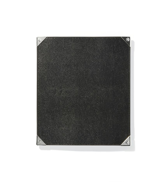 Пятая коллекция Objects Collection No. 5 по обыкновению выдержана в черном цвете и включает в себя матовую черную алюминиевую бутылку для воды с держателем для плеча из змеиной кожи, полированный серебряный карабин, маленький кожаный замочек с ключиком и коврик для компьютерной мышки из тисненой кожи ящерицы.