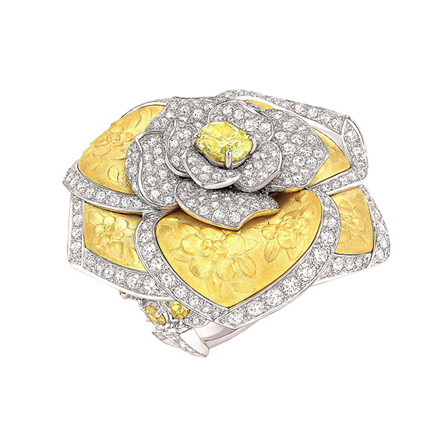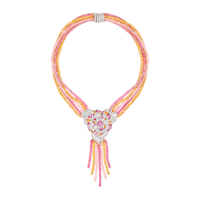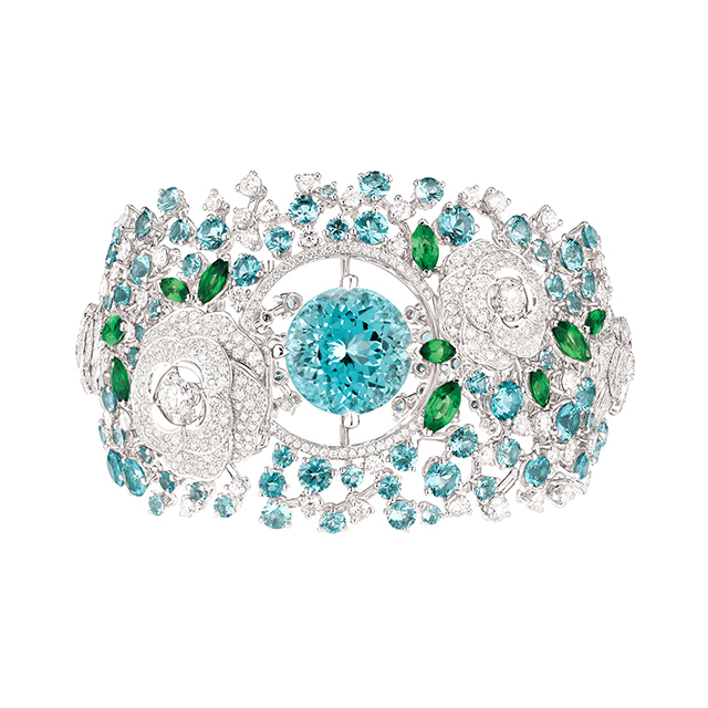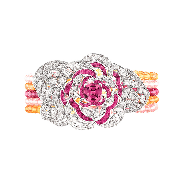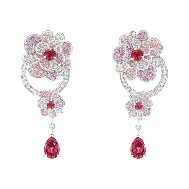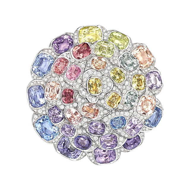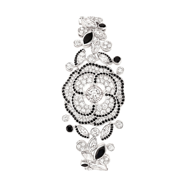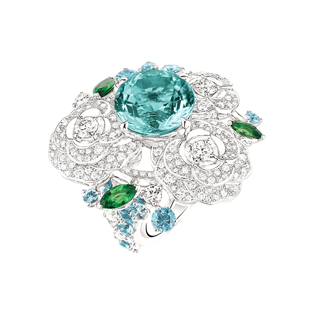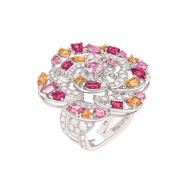 Впервые коллекцию высокого ювелирного искусства Jardin de Camélias показали в январе прошлого года на кутюрной неделе моды в Париже. С того момента драгоценная линейка колец, брошей, ожерелий и браслетов в форме любимого цветка Габриэль Шанель стала путешествовать и выставляться в ювелирно-часовых бутиках Chanel по всему миру. Накануне Jardin de Camélias, цветущая бриллиантами, сапфирами, рубеллитами, турмалинами, опалами, жемчугом и прочими приятными женскому слуху красотами, наконец добралась до столицы, где будет сиять в витринах флагмана на Петровке вплоть до 11 ноября.