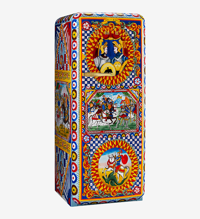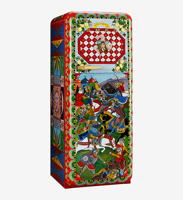 Доменико Дольче и Стефано Габбана, однако, решили продолжить разговор и все-таки осветить и будущее тоже. И, объединившись с компанией Smeg, выпустили коллекцию холодильников. Расписанных вручную в фирменном стиле Dolce & Gabbana, покрытых нарисованными рыцарями на белых конях, красочными (и вовсе не кровавыми) сценами сражений и яркими орнаментами, но все-таки по-прежнему принадлежащих к обширному клану бытовой техники. А значит, вовсе не сказочных, а крепко укорененных в нашей с вами повседневной реальности.
