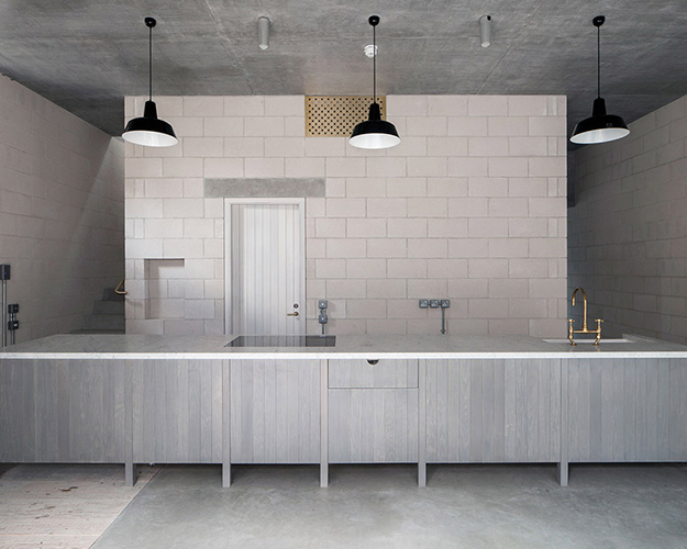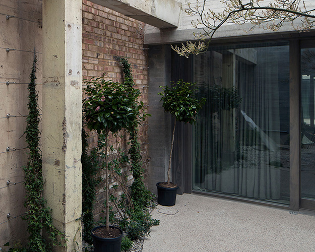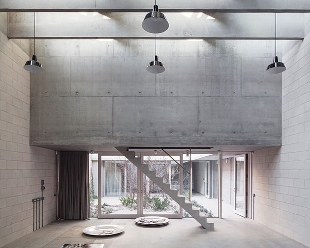 В распоряжении фотографа несколько просторных помещений, выполненных в индустриальном стиле в серо-белой цветовой гамме. Зелеными акцентами в интерьере стали внутренние сады. «Эти сады вдохновлены естественными небольшими парками, которые хаотично разбиты в разных частях города. Они очень органично разбавляют урбанистический пейзаж», — пояснил Юрген.