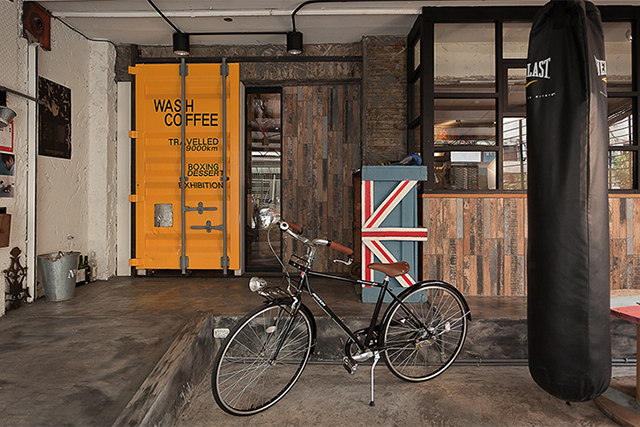 Интерьер был оформлен соответствующе: просто, непретенциозно. Скорее даже мрачновато и индустриально — непривычно как для обычно светлых прачечных, так и, как правило, для выбеленных кофеен. Металл, дерево, тканые обивки мебели, сетка и (внезапно) боксерская груша в центре зала — в общем, о своем нахождении в чудаковатой азиатской стране не придется забыть.