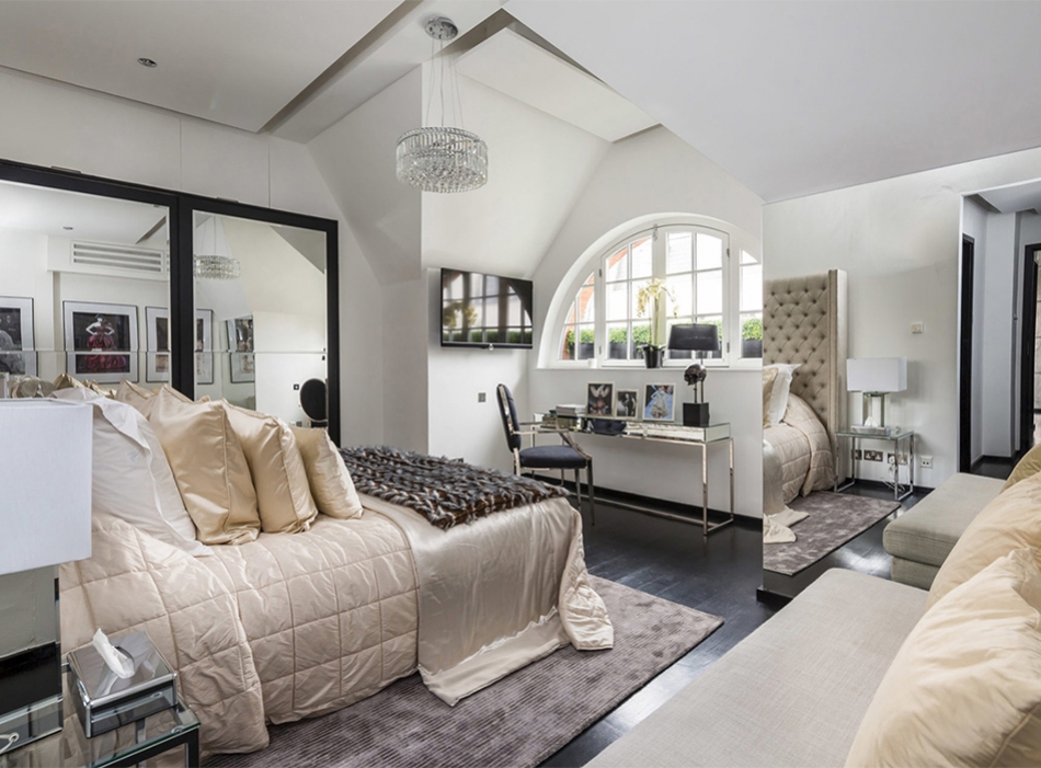 Апартаменты площадью 545 квадратных метров расположены в лондонском районе Мейфэр на улице Данрейвен-стрит. Ванные, отделанные мрамором, несколько спальных комнат и обеденный зал, рассчитанный на 10 персон, — все комнаты украшены фотографиями самых знаменитых работ дизайнера и множеством зеркал. Среди других достопримечательностей пентхауса — терраса с садом на крыше и с впечатляющим видом на город.