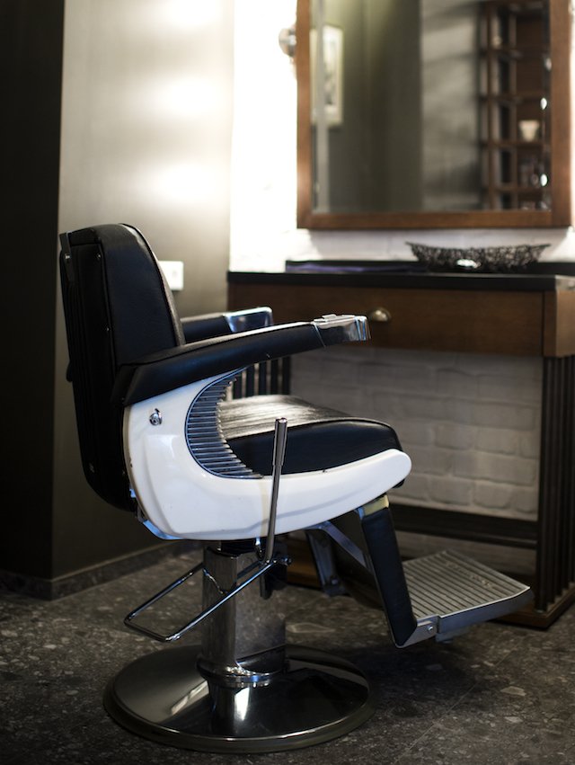 Новый Mr. Right расположился в доме № 12 на Чистых прудах. При входе справа встречает стойка ресепшен, слева — два кресла с особым освещением, как в профессиональных артистических гримерках: круглые лампочки с матовым покрытием не ослепляют клиента и помогают мастеру максимально чисто провести ритуал бритья или стрижки. Рядом установлены бойлер и трехцветная вращающаяся лампа — международная эмблема барбершопов, отсылающая к средним векам, когда цирюльники еще считались работниками медицинских учреждений.