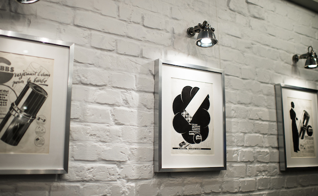 Во втором зале два кресла, а на стенах рекламные плакаты с иллюстрациями более не существующей марки цирюльных принадлежностей далекого 1936 года, которые Рымкевич нашел в маленьком парижском магазинчике. "Вообще, все откуда-то привезено: мы теперь путешествуем с огромным багажом, как челноки, ходим на все блошиные рынки и заглядываем во все антикварные магазины и что-нибудь да привозим", — смеется Александр.