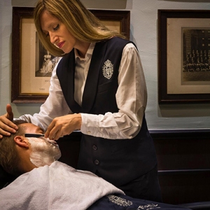 Среди услуг нового заведения знакомое многим "Королевское бритье" по технологии и на основе косметики Truefitt & Hill, моделирование усов, бороды, стрижки. Каждое лезвие станка одноразовое, все инструменты проходят обработку, и даже для помазка предусмотрен стерилизующий раствор.
