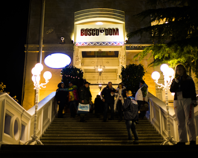 Митенки действительно пригодились: несмотря на обилие горячительных напитков, обогревателей и нескончаемого количества вкусной теплой еды, температура в здании Морвокзала была ниже нулевой отметки. Погреться можно было в соседнем павильоне, где проходили съемки программы "Вечерний Ургант". К слову, на протяжении всей Олимпиады и работы Bosco Dom ведущий Иван Ургант будет вести свой эфир из приморского Сочи.