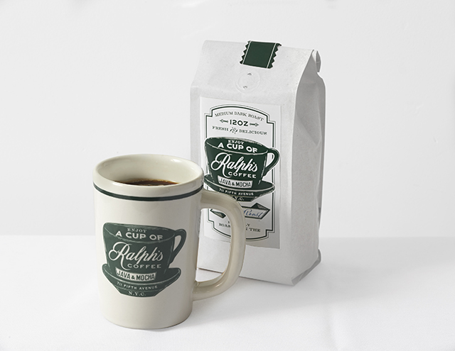 Сам хозяин предпочитает хороший крепкий кофе без сахара. Поэтому совместно с компанией La Colombe Ральф Лорен разработал свой собственный кофейный сорт, который имеет маркировку USDA organic. Это означает, что земля, на которой планируется выращиваться зерно, должна отдыхать минимум три года до посадки и не обрабатываться химией. Так что качество сорта Ralph's Organic Espresso, зерно для которого везется из Колумбии, Гондураса, Никарагуа и Эфиопии, засвидетельствовано придирчивыми санитарными службами Штатов. Кроме того, в бистро также предлагают сэндвичи с жареной индейкой или перцем и авокадо, соки и воды.