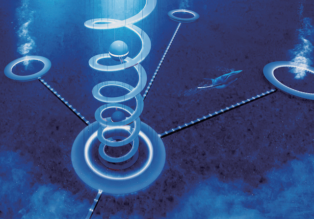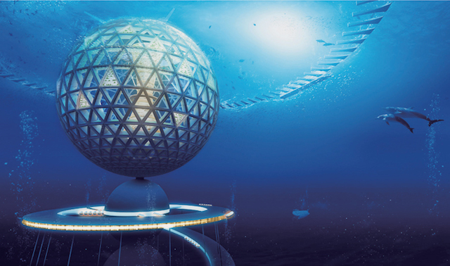 Плавающая сфера Ocean Spiral, диаметром 500 метров, рассчитана на проживание 5 000 резидентов и будет закреплена на морском дне с помощью 15-километровой спирали. В куполе разместятся жилые и бизнес-комплексы, а в основании — исследовательские лаборатории, где ученые будут искать дополнительные энергетические источники. Ориентировочная стоимость проекта составляет $26 миллиардов.