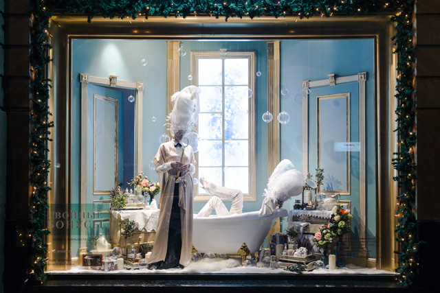 В этом году витриы со стороны Кузнецкого Моста и Неглинной улицы демонстрируют прохожим сюжеты на тему излюбленных женских развлечений: поход в кондитерскую, салон красоты, примерку платья в модном ателье, пикник на природе и веселые танцы. В парадных окнах со стороны Петровки разворачивается волшебная история Золушки. С этой же стороны можно наблюдать увлекательную прогулку "героев" в магическом саду, фото-студию в стиле ретро и оживших кукол на театральной сцене.
