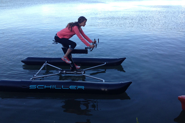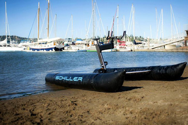 Калифорнийская компания Schiller Sports, Inc. твердо уверена, что абсолютно вся земная поверхность предназначена для езды на велосипеде. Вдохновляясь этим идейным принципом, разработчики создали новый концепт велокатамарана Schiller X1 Water Bike. Складная новинка при весе в 20 килограммов достаточно легка в транспортировке и собирается меньше чем за 10 минут. В ее основе — два непотопляемых базовых понтона и прочная рама из алюминиевого сплава, на которой закреплено подобие велотренажера. При кручении педалей механизм запускает винт, а удобный руль позволяет без труда маневрировать по водной глади и даже двигаться в обратном направлении. Максимальная скорость разгона Schiller X1 Water Bike составляет 16 км/ч. Стоимость велоновинки — $6500.