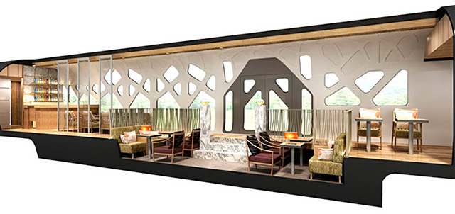 Поезд получит название Cruise Train и будет представлять собой состав из 10 вагонов цвета шампанского, который способен перемещаться как по электрическим рельсам, так и при помощи "рогов". Жителям и гостям Японии будет за что поблагодарить Кена Окуяму, одного из главных дизайнеров проекта: в состав войдут два вагона со специальными обзорными площадками и панорамными окнами, лаунж-вагон и вагон-ресторан.