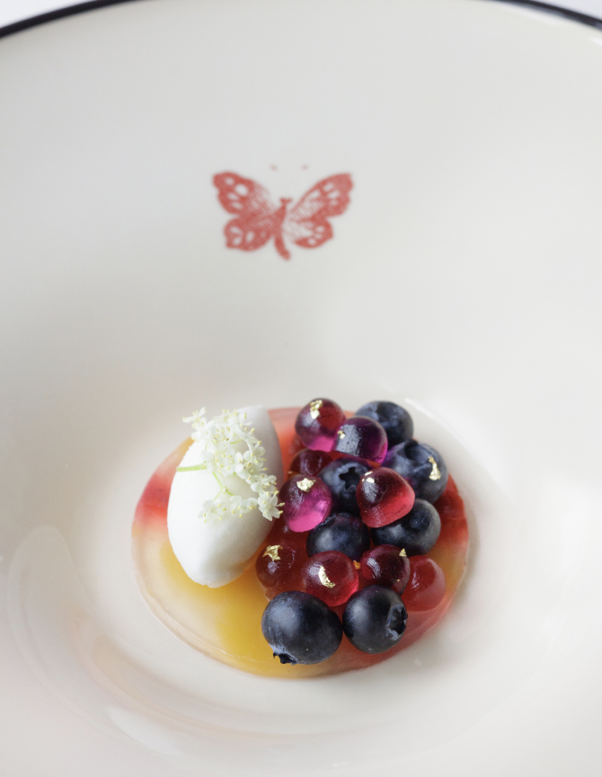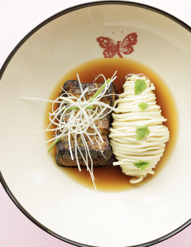 Главным поваром заведения стал Антонио Яковелло. Он составил меню вместе с мишленовским шефом Массимо Боттурой и Каримом Лопесом из флорентийского Gucci Osteria. Они предложили новый взгляд на классические блюда итальянской кухни и разработали сезонные позиции в японском стиле.