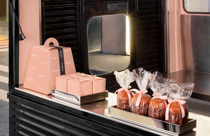 До 24 декабря перед бутиком Saint Laurent Rive Droite будет работать фургон с едой. Там можно попробовать блюда из миланской пекарни Sant Ambroeus, любимого заведения креативного директора Saint Laurent Энтони Вакарелло.