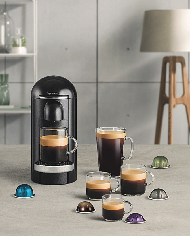 Nespresso представил кофемашины нового поколения, получившие инновационную систему Vertuo, созданную для тех, кто предпочитает пить кофе в больших чашках. Процесс приготовления напитка осуществляется с помощью запатентованной технологии Centrifusion, когда капсула раскручивается в кофемашине, как в центрифуге. Nespresso Vertuo считывает штрихкод, нанесенный на капсулу, и автоматически настраивает идеальные параметры: объем, температуру, время экстракции и скорость вращения капсулы. Как только поток воды начинает проходить через молотый кофе в капсуле, ее скорость вращения увеличивается до 7 000 оборотов в минуту, что позволяет раскрыть вкус и аромат бленда и получить плотную пенку.