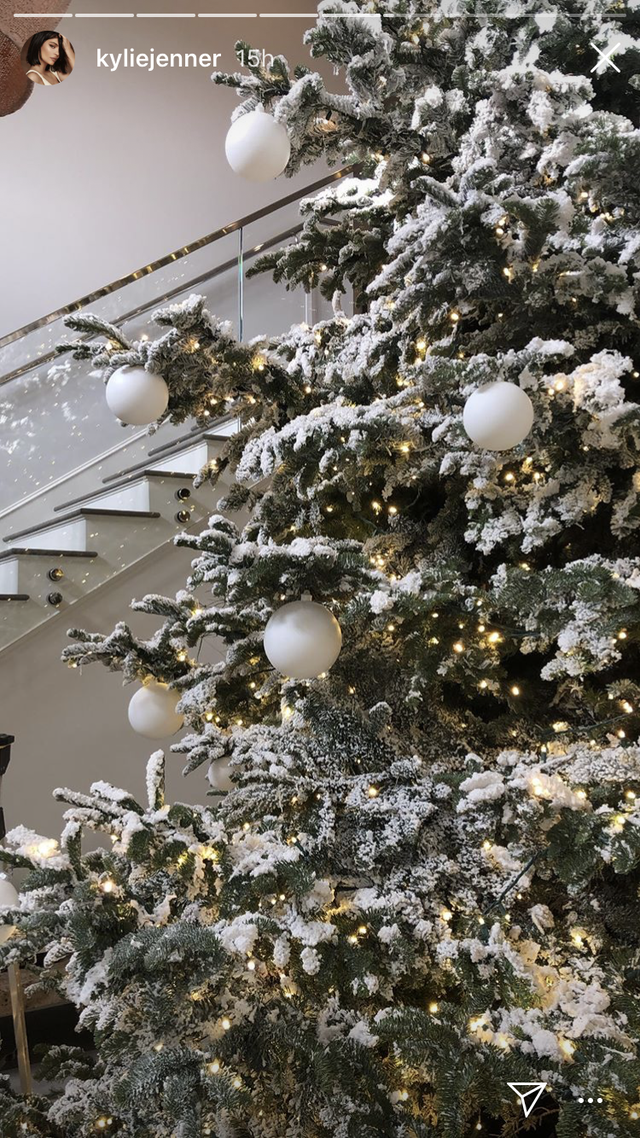 Кайли Дженнер показала в Stories инстаграма, как происходит украшение ее дома к зимним праздникам. У молодой миллиардерши в этом году огромная елка, которая не влезает в экран смартфона. Она покрыта искусственным снегом и наряжена белыми украшениями.