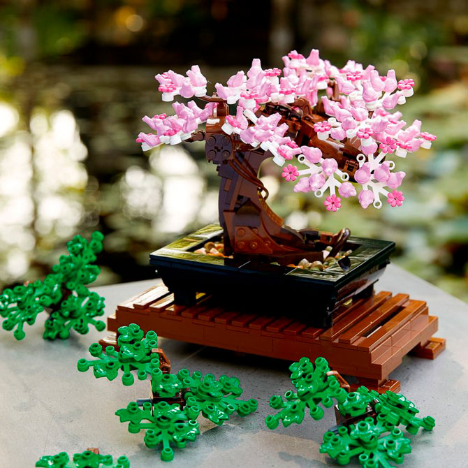 С помощью коллекции можно собрать отдельные цветы, букет или сделать миниатюрное цветущее дерево. Цветочный набор состоит из 756 деталей для создания роз, маков, ромашек, астр, львиного зева. Набор для бонсай включает в себя 878 деталей, в том числе подставку.